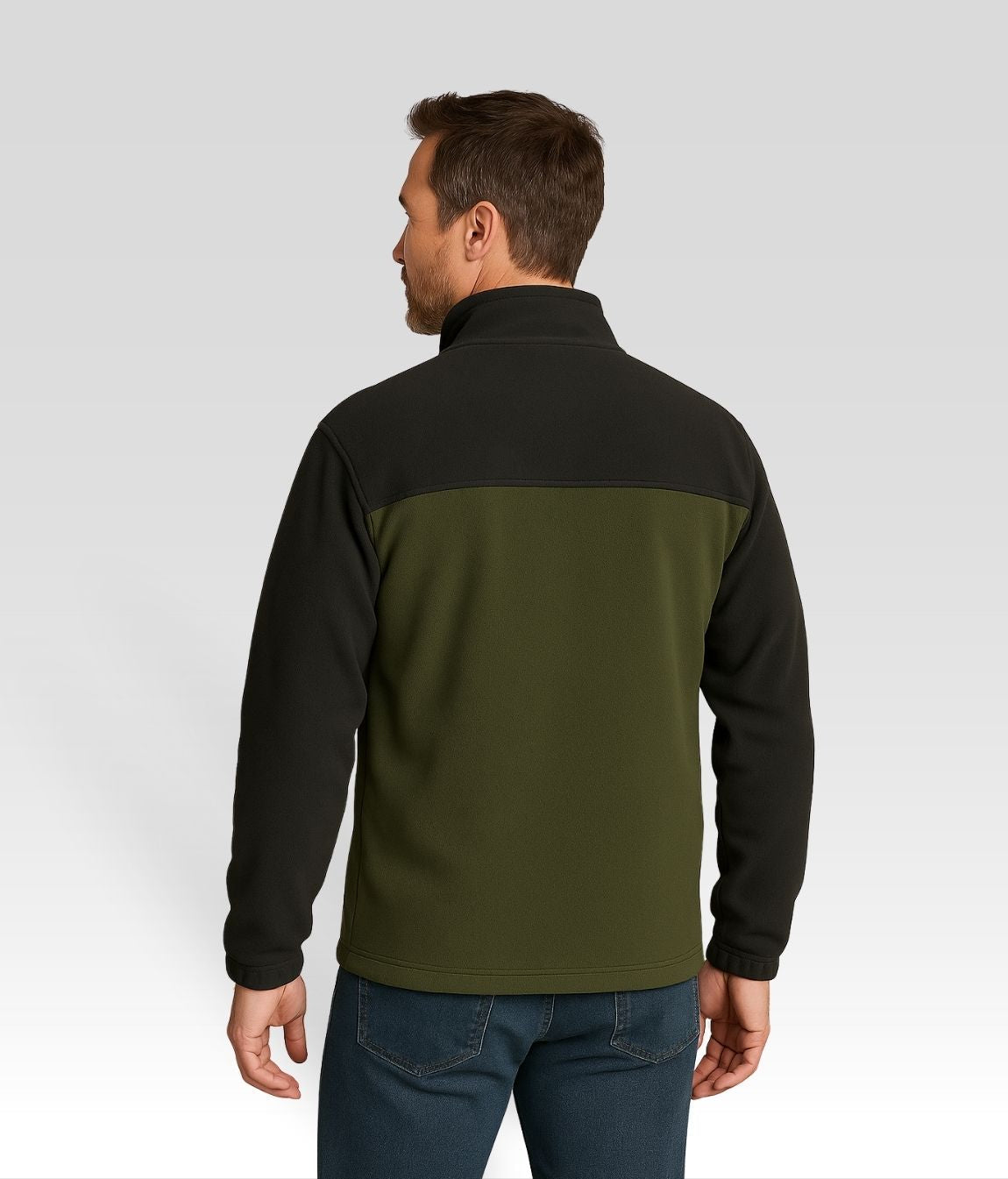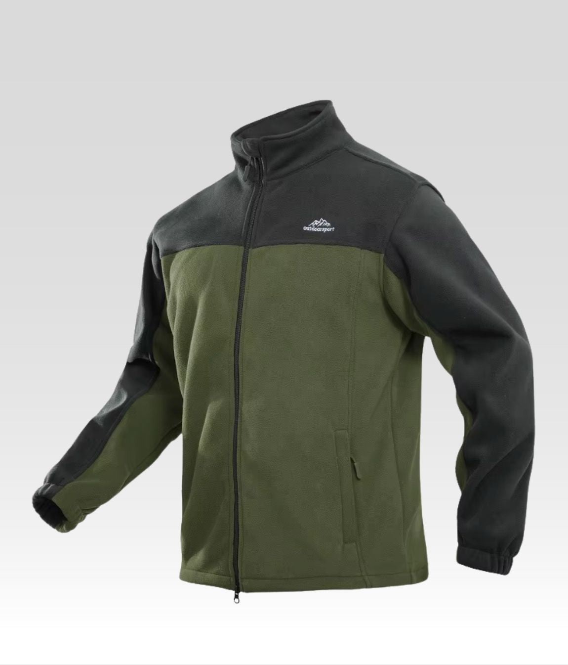 Zeitloses Design: Zweifarbige Optik in Olivgrün und Anthrazit mit sportlichem Stehkragen.
